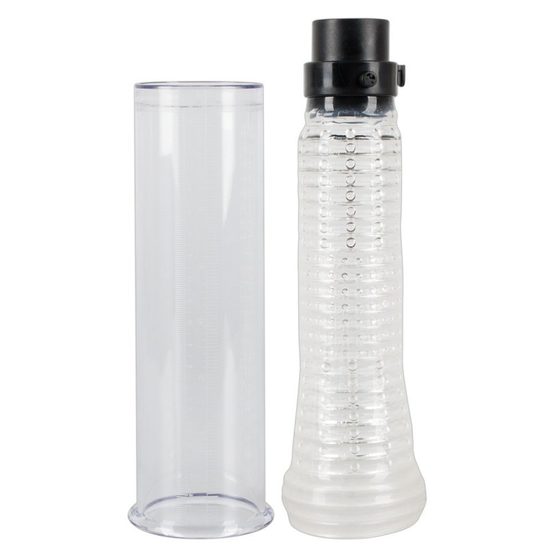 Avec un tube transparent mesurant 16,5 cm de long et 4,5 cm de diamètre intérieur, elle offre une expérience visuelle excitante. Sa gaine souple et texturée glisse sensuellement pour encore plus de plaisir. Son fonctionnement est manuel et nécessite simplement deux piles AA (non fournies).