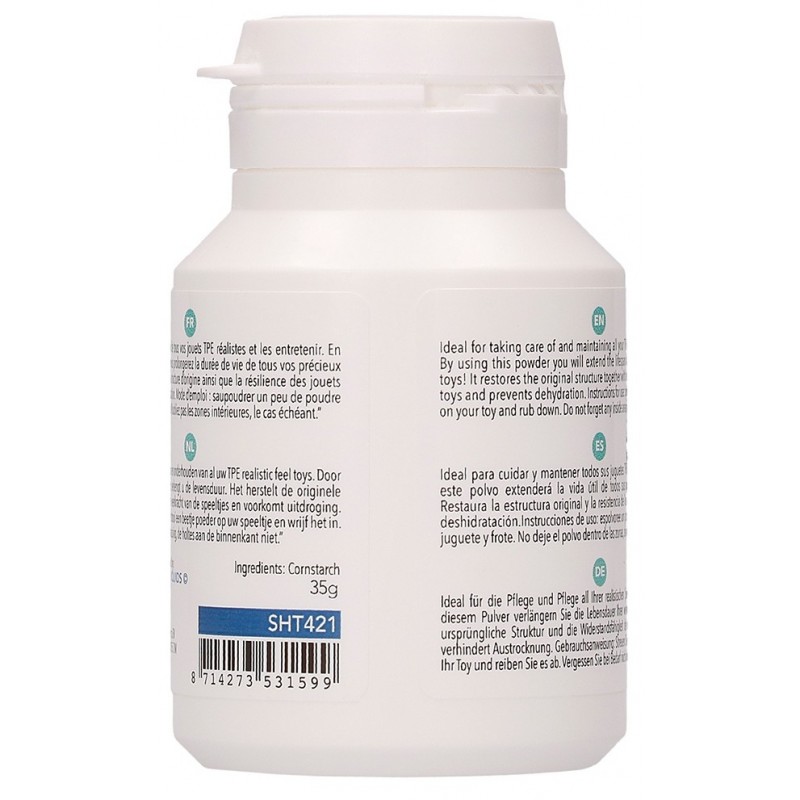 Élaborée à partir de fécule de maïs, cette poudre offre une solution sûre et efficace pour l'entretien de vos sextoys. Elle permet de maintenir la douceur et la souplesse des matériaux en TPE, garantissant ainsi une utilisation prolongée et agréable.
